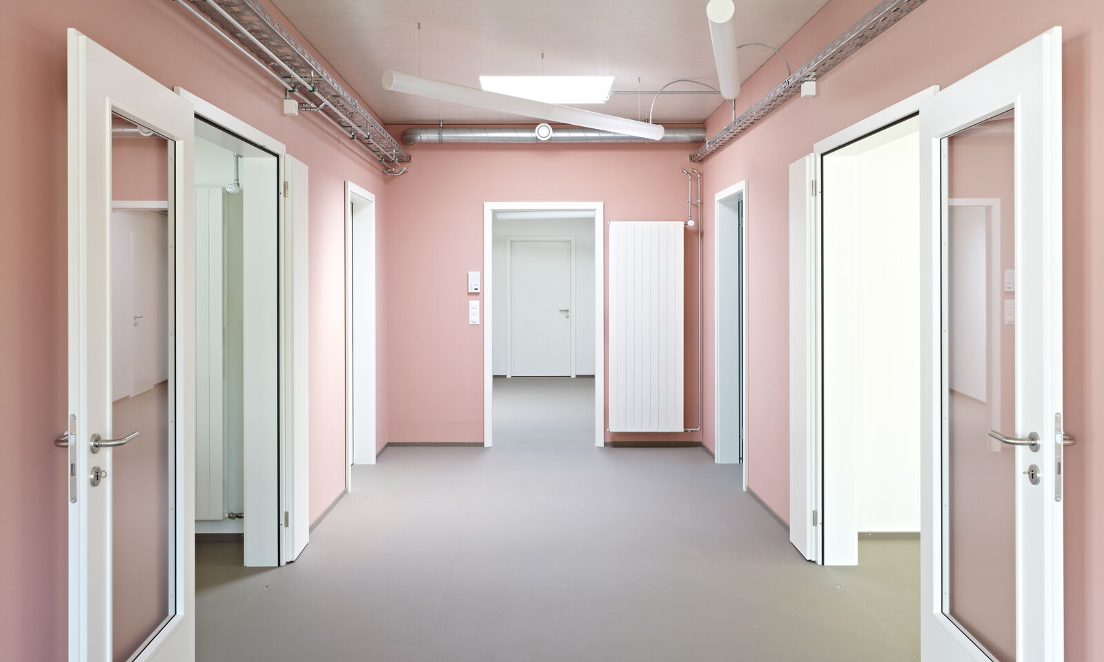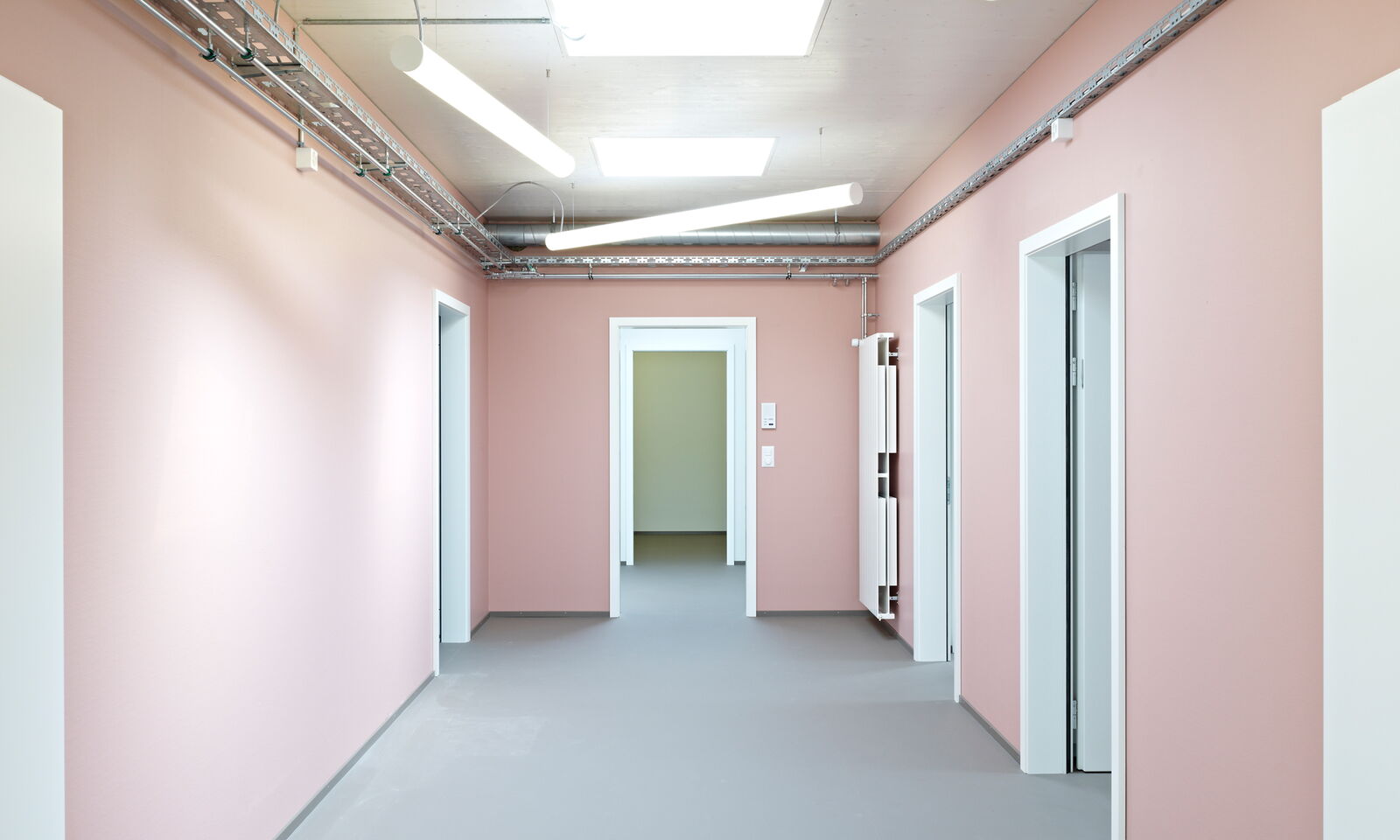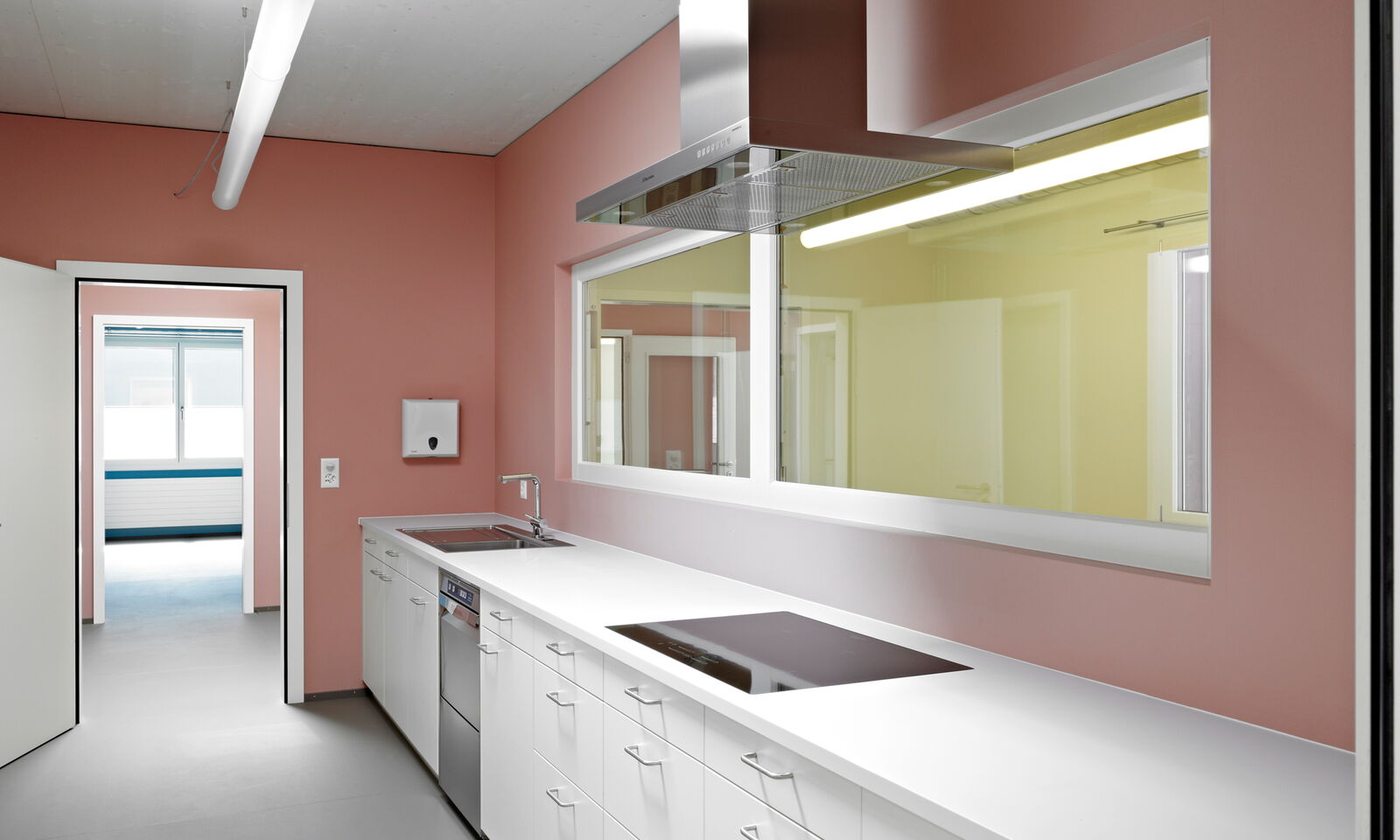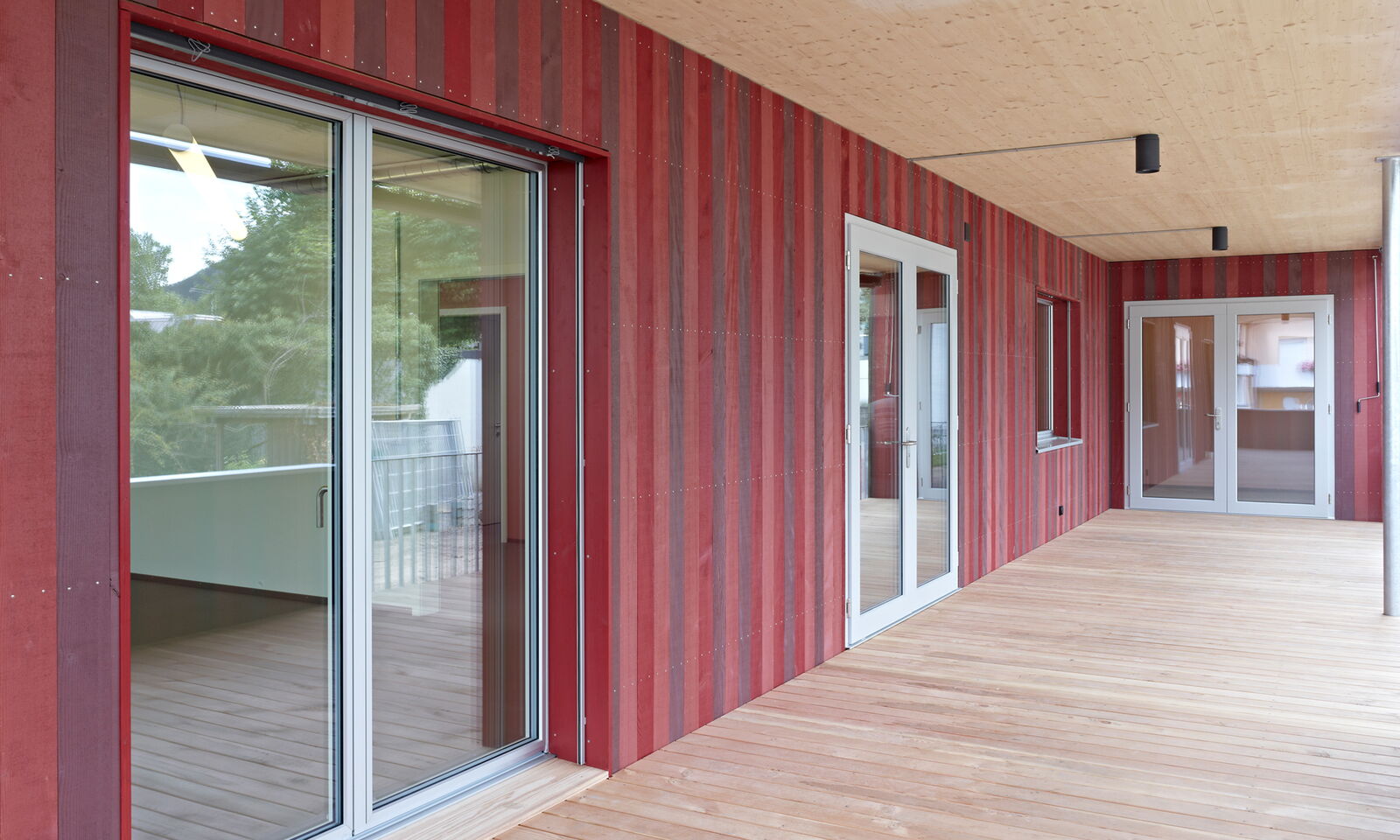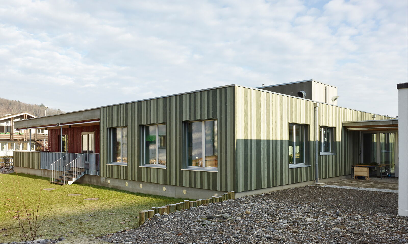 Das Gebäude ist nach Minergie-Eco zertifiziert. Die – unter anderem – schadstoffarme Bauweise eignet sich insbesondere für Nutzungen mit Kindern. Sie hilft dank der vorgeschriebenen Lüftung auch mit, mögliche Restausdünstungen der Baustoffe abzuführen, die der kurzen Bauzeit geschuldet sind.