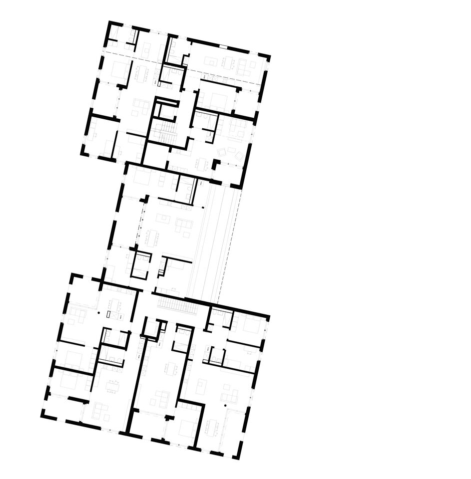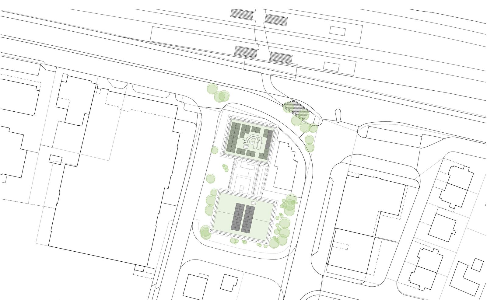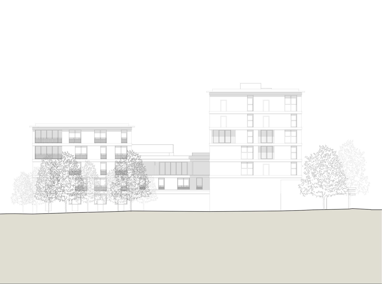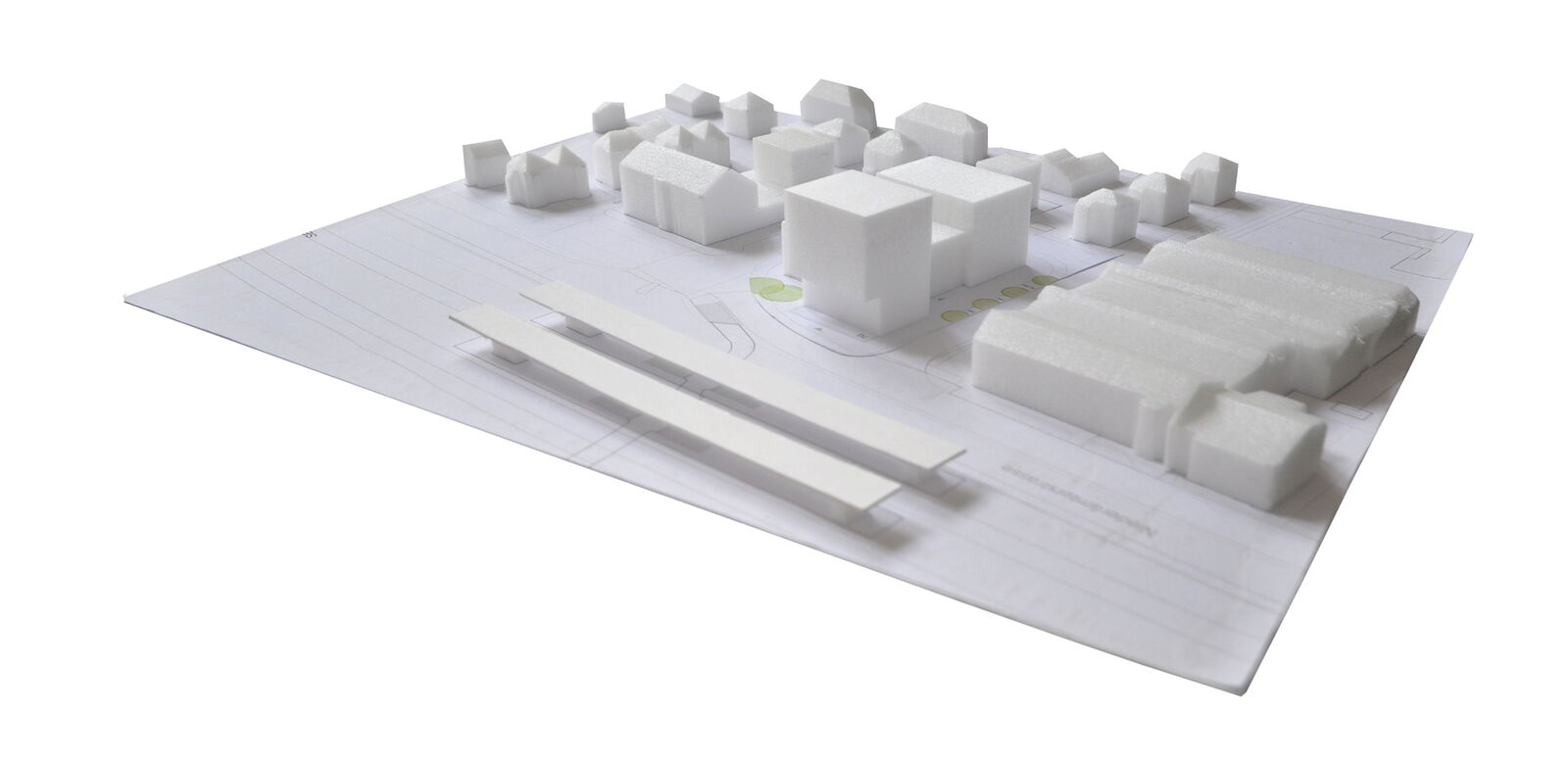 Als Akzentuierung zum Bahnhof ist eine Höhenentwicklung in Richtung Niederämterstrasse angezeigt. Zur Adressbildung (sowohl «nach aussen» zur Niederämterstrasse als auch «nach innen» ins Quartier) macht eine Grundrissgliederung der zukünftigen Bebauung Sinn. Die Gliederung erlaubt räumliche Bezüge zu den angrenzenden Häusern und hierarchisiert die Aussen- und Freiräume; die Strassenräume werden rhythmisiert und einer «Korridorwirkung» wird so entgegengewirkt. Last but not least resultiert aus der Gliederung eine grössere Fassadenabwicklung, die der Wohnnutzung in den oberen Geschossen dient. In der Höhenentwicklung wird die Bebauung gestaffelt, damit so orts-baulich auf die unterschiedlichen Situationen reagiert werden kann.