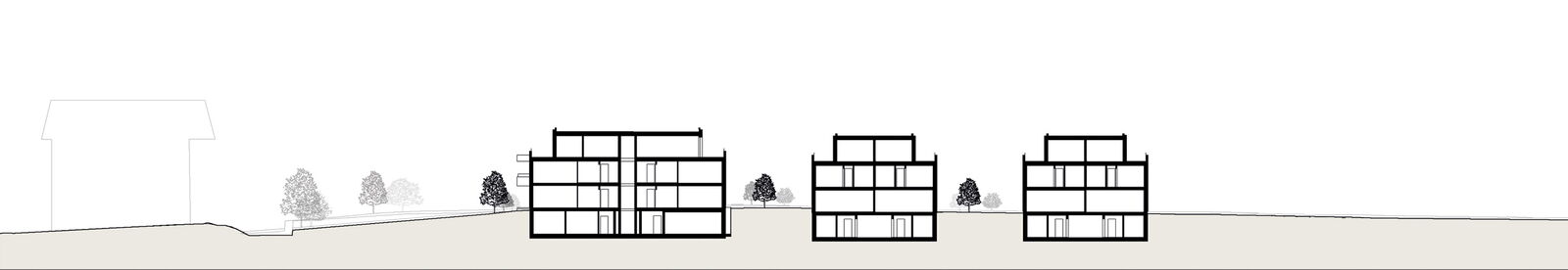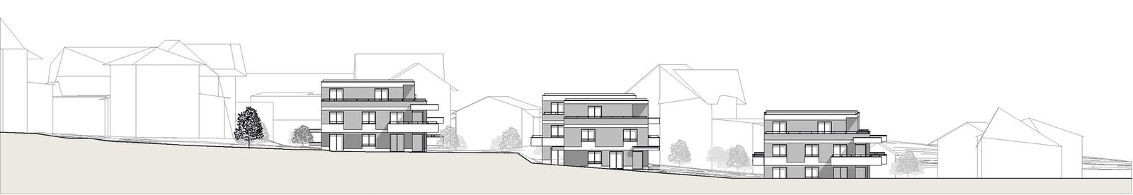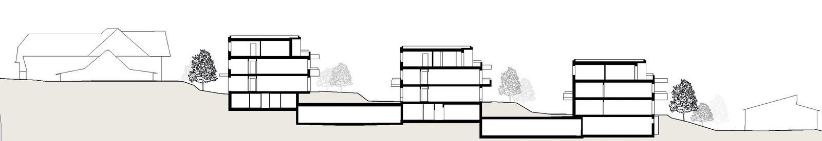 Die Anordnung der Baukörper folgt den Höhenlinien des Geländes und ermöglicht so eine optimale Einbindung in die Umgebung, sowie eine gestaffelte Aussicht auf den Bielersee im Westen.