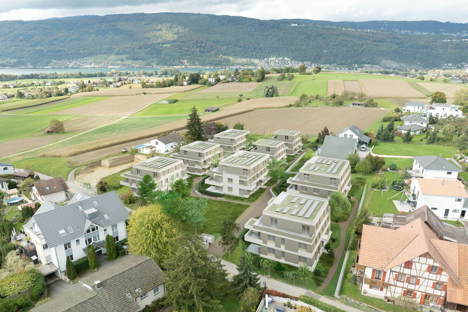 Östlich des Bieler Sees in der Gemeinde Bellmund entsteht die Wohnüberbauung Bell Site. Umgeben von Ein- und Mehrfamilienhäusern gliedert sich die neue Bebauung in bestehende Strukturen ein.