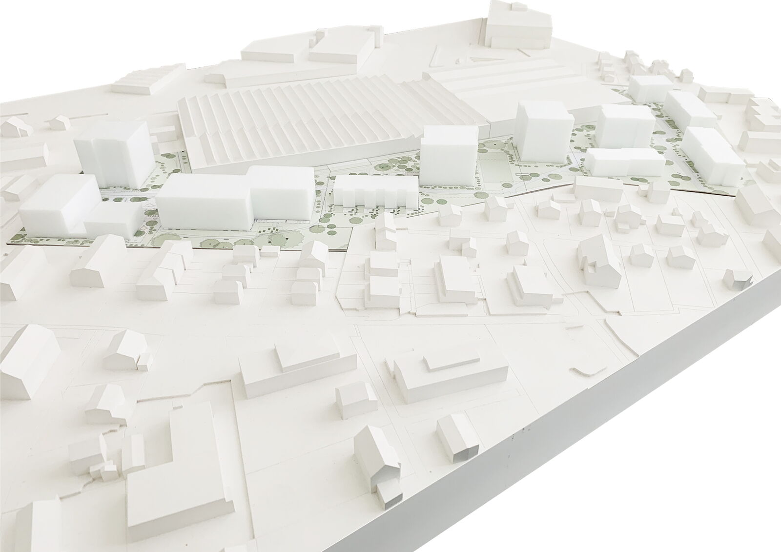Südlich des Stadtkerns von Thun liegend, gehört das Areal zum eher ländlich suburban geprägten Ortsteil «Gwatt». Das Produktions- und Lagergebäude der Hoffmann-Neopac stellt für die nächsten Jahre eine räumliche Konstante dar. Die städtebauliche Strategie gründet auf den folgenden Pfeilern: «Identifikationsstiftung», «Diversität und Kohärenz», «Flexibilität und Etappierung». Dem Zweck der Identitätsstiftung werden zukünftig die Aussen- und Freiräume und die Stellung und Ausrichtung der Gebäude dienen. Der heutige nördlich der Halle liegende Freiraum wird auch in Zukunft eine wichtige Rolle spielen, er bildet das Rückgrat der Anlage. Korrespondierende Gebäudehöhen und Gestaltungsgrundsätze für Material und Farbe der Gebäude machen das Quartier ablesbar. Das neue Quartier wächst aus dem alten heraus. Ein differenziertes System an Wegen und Anbindungen vernetzt Neues mit Altem.
